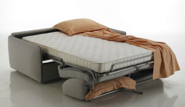 - Clamshell "francesos" - La versió clàssica dels mobles entapissats corredissos. Quan es munta, ocupa poc espai, però quan es disposa, la part frontal s’estén un metre i mig a dos en endavant, depenent del model específic. El mecanisme "francès" no es recomana per a ús freqüent: com a dormitori, un sofà només pot servir ocasionalment, però bàsicament aquests models estan dissenyats més per asseure's.