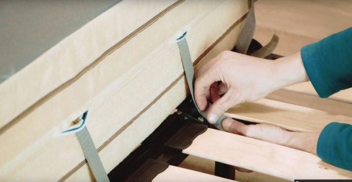 - El matalàs s’ha de fixar amb cintes en zones on hi hagi corbes, que apareixen quan el sofà entra en un plegat. És especialment important arreglar correctament el component suau, per tant és millor utilitzar totes les cintes que vinguin amb el kit.