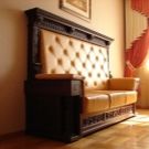 Aquests casos transferiran mentalment el propietari a l’època soviètica. Potser, és d’aquesta forma quan es fa un autèntic sofà estalinista clàssic. Té un respatller molt alt que supera l’amplada del seient.