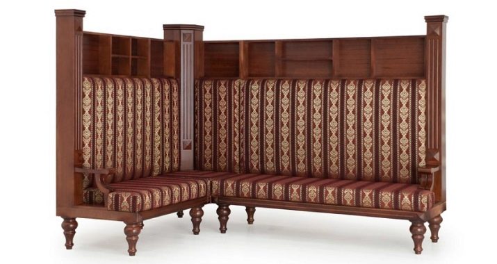 Els sofàs de cantó de Stalin també s’ofereixen amb diferents variacions de l’esquena, que poden ser de coixins, fusta, corrons i tenir una sanefa de fusta i patrons tallats. Els elements de la cantonada es situen millor en habitacions més grans, però també seran pràctiques en habitacions més petites., per exemple, permetre l’ús funcional de l’angle.