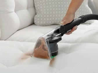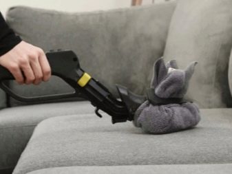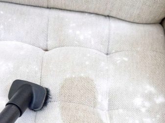 - A la primera fase, és desitjable eliminar part de la pols de la tapisseria del sofà o la coberta amb un aspirador o un maçot habitual.