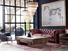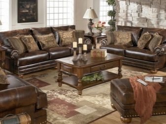 - Les butaques també haurien d’estar presents a la sala d’estar.. Per al conjunt s'ha seleccionat un sofà voluminós i representatiu, generalment en una paleta fosca.