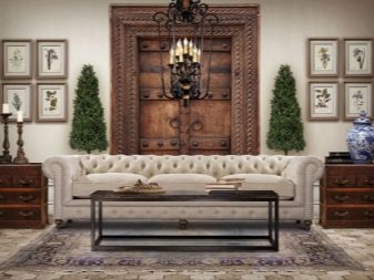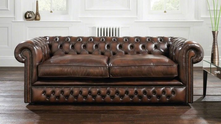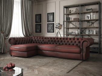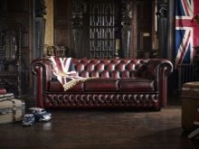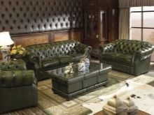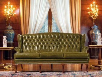 - Chesterfield Els models de sofà més populars. La seva característica distintiva és un disseny acolchado amb botons.