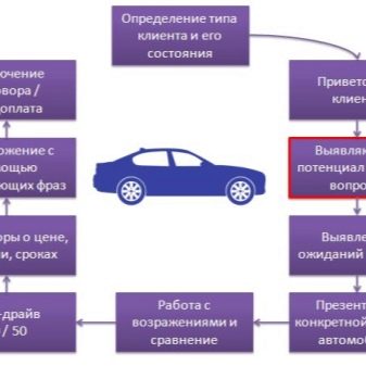 Un especialista en vendes de vehicles ha de saber-ho tot sobre el producte que ofereix al client. Les preguntes del comprador poden ser les més inesperades, i el recurs personal en combinació amb un bon coneixement sempre arribarà al rescat d'aquest venedor. Quan es treballa amb mercaderies cares, el gestor ha de ser capaç de trobar un llenguatge comú amb qualsevol comprador, estar educat, atent i tenir la capacitat d’organitzar la comunicació de manera que no imposi la seva pròpia opinió al client.