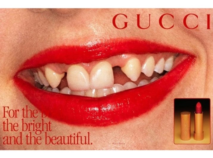 Dissenyadors de Gucci, que van commocionar a tothom amb aquest fet va permetre als models amb defectes de mandíbula somriure obertament al món per primera vegada. El cantant punk, Dani Miller, va mostrar a tothom el seu defecte, i els maquilladors el van superar amb un pintallavis impecablement emparellat i línies de llavis afilats. Què volia dir Gucci?