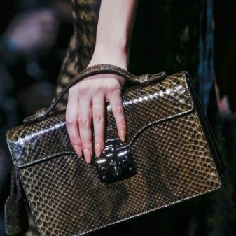 Els animalistes no aniran enlloc a la propera temporada, avisen els dissenyadors. Per tant, les dones amb bosses d’eco-materials que s’assemblen a la pell dels rèptils reals continuen caminant victoriosament pels carrers. Naturalment, ni un sol rèptil va ser perjudicat a l’hora de fer la confecció. Quan escolliu aquest accessori, assegureu-vos que el cuir artificial sigui fiable, fort i d’alta qualitat.