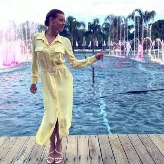 Els estilistes confien que els tons de llimona són ideals per a dones amb pell bronzejada. I així ho va confirmar l’actriu Ekaterina Shpitsa, que de vacances va triar un barnús de llimona.