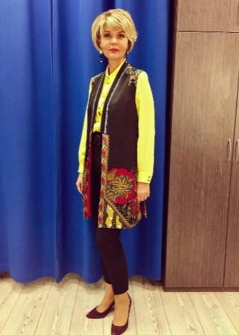 Presentador de TV Julia Menshova va agafar la tendència i va aparèixer en llimona al canal One de l'aire. Va triar el color de moda de la brusa i no es va perdre, complementant favorablement la imatge amb una jaqueta de màniga negra i sabates cireres.