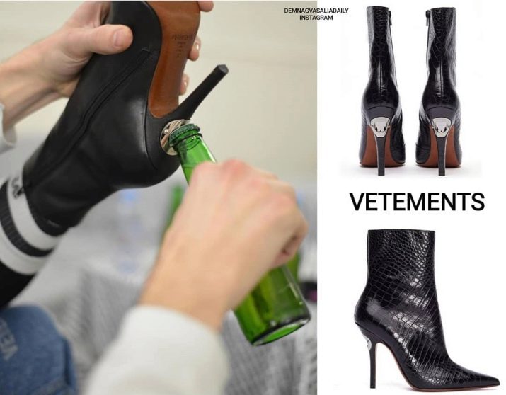 Marca de moda francesa Vetements, fundada per una dissenyadora d'origen georgià Demna Gvasalia, va presentar una sabata especial per a dones dissenyada estrictament per a festes i amants de les begudes. Una foto amb una descripció del model va aparèixer al compte oficial d’Instagram de l’empresa de moda el dia abans.