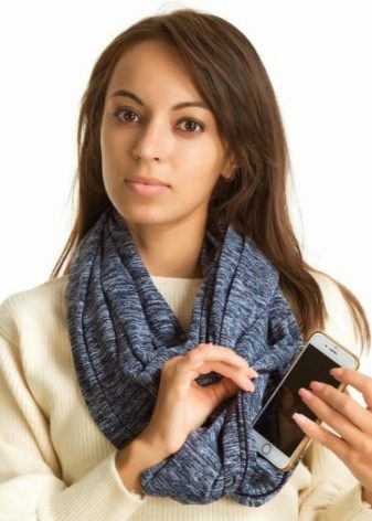 El mocador del mocador té una butxaca oculta; en absència de butxaques normals, podeu posar claus, diners o un telèfon. El més important és no oblidar-ho d’aconseguir-ho tot d’un lloc força inusual: un mocador.
