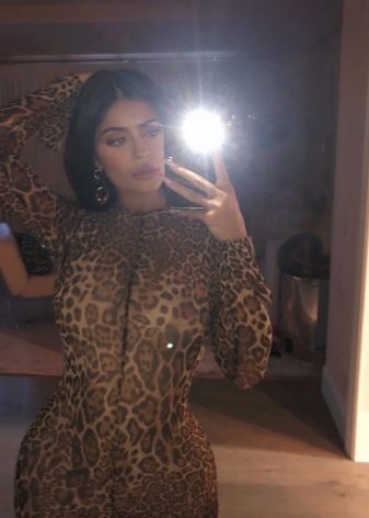 Kylie Jenner, de 21 anys, va decidir seguir els passos de la seva germana Kim Kardashian i vestit amb un cos de lleopard. Aquesta impressió es considera la tendència de la temporada actual i, a vegades, la fan servir diferents celebritats.