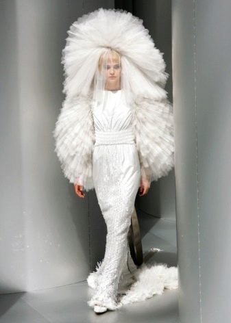 Inusualment es va acostar a l'elecció d'un vestit de núvia Celine Dion. Fins i tot els convidats estaven espantats per l’enorme “casc”, clavat de pedres de pedra. Aquest disseny al cap de la núvia i el seu magnífic vestit la van convertir en la reina de la neu en roba militar o un fantasma del centurió romà.