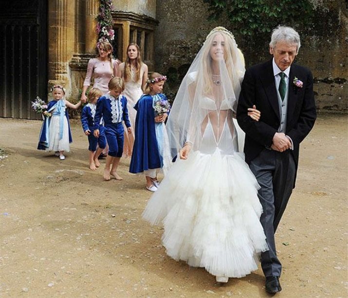 A més d'Emma, estilistes experimentats van concloure que es va inspirar en el fons de pantalla de l'habitació dels nens. Volants, espatlles bufades: un vestit típic de nines. La va fer semblar una fada i no com una núvia real i viva.
