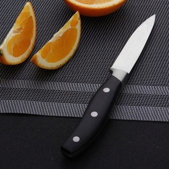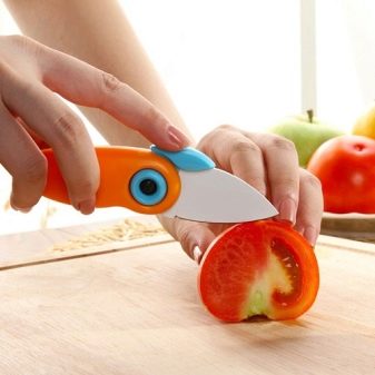 - De mida petita. Un element voluminós gran serà molt inconvenient per tallar fruites petites. L’excepció són només les verdures grans (carbassa, carbassó). A més, els ganivets curts es fan poc adequats per tallar síndria o meló.