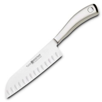 - Santoku. Aquest ganivet japonès va guanyar el cor de no només les mestresses de casa, sinó també els cuiners professionals. A més d’atractiu extern, presenta unes característiques excel·lents. La fulla i el mànec estan perfectament equilibrats, de manera que són molt còmodes per treballar. El pes de la fulla fa la major part del vostre treball, amb poc o cap esforç. Un altre avantatge indubtable és la seva versatilitat.