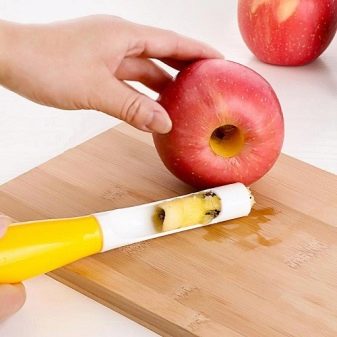 - Si voleu sorprendre els convidats no només pel gust dels seus plats, sinó també per la seva bellesa, adquireu ganivets especials. Per exemple, un ganivet eliminador de nucli ajudarà a desfer pomes i peres de llavors, i l’aspecte continuarà sent atractiu.