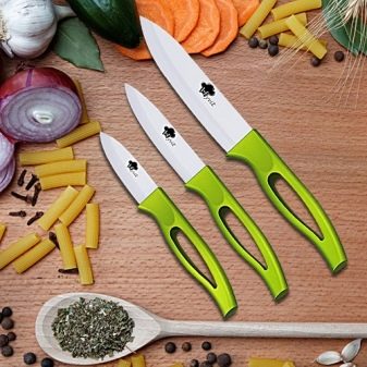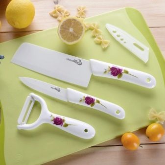 La ceràmica no té la mateixa flexibilitat que el metall. Els convindrà fer rodanxes rectes (al tallar cebes, patates, pomes). Si heu de maniobrar quan talleu o talleu una pell rugosa d’un vegetal amb forma irregular, és millor utilitzar-ne un de metall. Entre els avantatges de la ceràmica es pot destacar la nitidesa de la fulla i les propietats antibacterianes. Les olors no s’absorbeixen i el risc de multiplicar-se a la superfície és mínim.