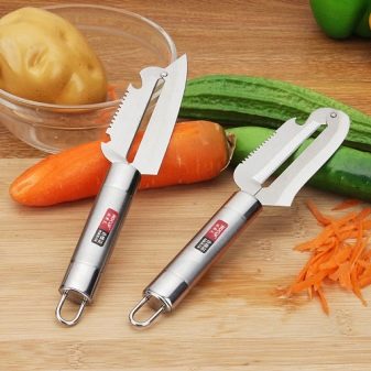 Avui en dia, sovint podeu veure peladors amb fulles a tots dos extrems. Una és per a la neteja, mentre que l’altra es pot tallar a rodanxes. Al centre, l’article està equipat amb un petit ratllador de plàstic. El més sovint s'utilitza per a la pell de llimona. Per tant, es pot argumentar que aquest producte és de 3 en 1.