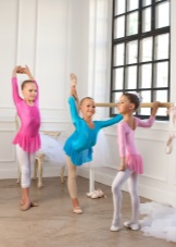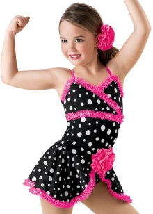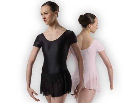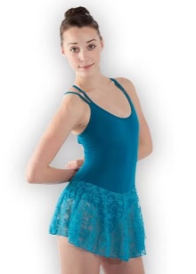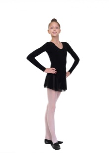 El leotard gimnàstic per a representacions de teixits sintètics elàstics es complementa amb una falda feta del mateix material. Els teixits barrejats amb niló, lycra permeten que el producte mantingui bé la seva forma. Aquests vestits són generalment pegadissos, complementats amb una gran varietat d’accessoris, com ara pedres de pedreria, lluentons i espurnes. La roba ha de destacar la bellesa de la dansa. Per tant, aquest aspecte és important.