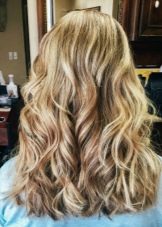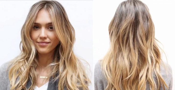 Els cabells llargs tenyits mitjançant la tècnica de Califòrnia semblen especialment luxosos. A diferència de les curtes i mitjanes longituds, on es processa principalment la zona superior del cabell, també es presta atenció a les filades situades a les profunditats. Això no és sorprenent, ja que in vivo aquest patró de crema de pèl també és visible.