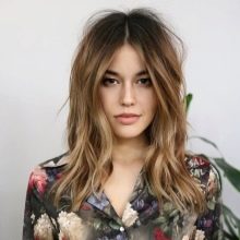 - Els propietaris de color de cabell castany clar poden tenir tipus de color “freds” i “càlids”. En funció d’això, el pentinat es pot diluir en diverses tonalitats (blat, nata, platí, gel de cendra, etc.). De vegades, per a una major versatilitat, el mestre afegeix no només tons clars, sinó també tons foscos (al nivell d’un color natural, però amb una tonalitat diferent).