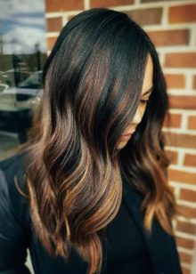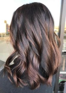 - Sobre els cabells foscos, la xocolata, el cafè, els tons de conyac poden brillar amb bons colors. És impossible alleugerir massa les fils. El fort contrast anul·larà els intents d’obtenir un efecte natural.