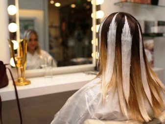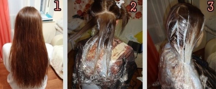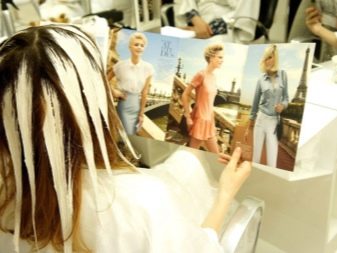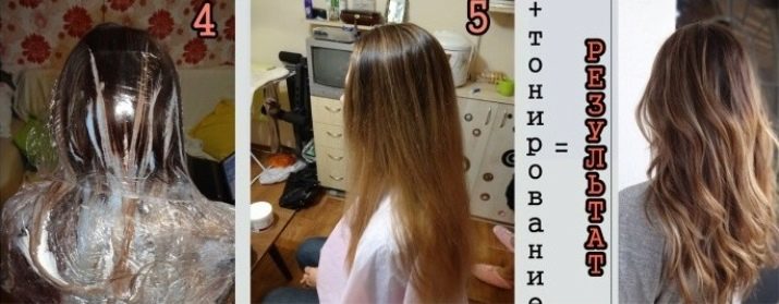 El cabell es divideix en fils segons el principi seleccionat. Als llocs adequats, una composició brillant s’indueix de les arrels. Típicament, les puntes per alleugerir, així com les cordes que emmarquen la cara, els cops de mà. A continuació, la tinció es realitza amb un colorant suau sense amoníac.