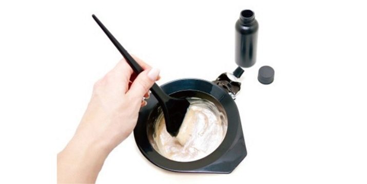 - La composició es va pastar immediatament abans de l’ús i amb molta cura perquè no es formin grumolls. Els grumolls condueixen a l'aparició de taques blanques en pèls uniformement tacats.