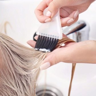 A continuació, parlem del procediment per aplicar una barreja brillant. La pintura s’aplica primer a la regió occipital i només després al front i als temples. La barreja ha de cobrir el cabell de manera uniforme i abundant, des d’arrels fins a extrems. El temps es defineix en finalitzar el procediment de sol·licitud de pintura.