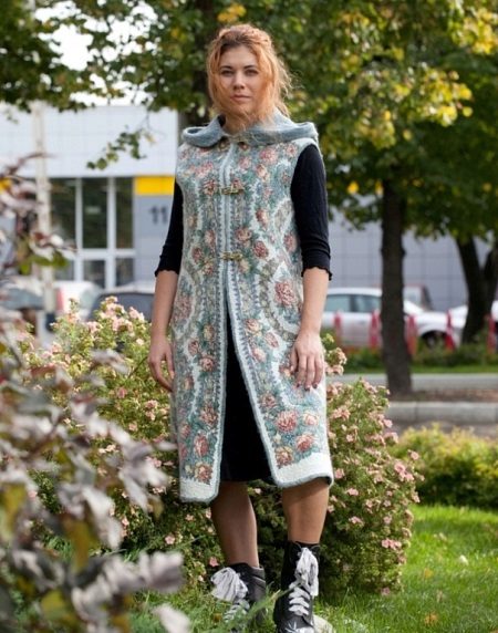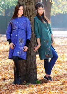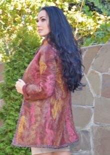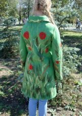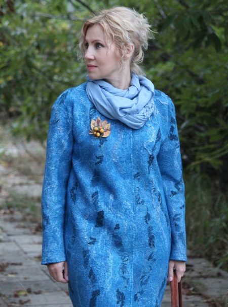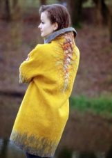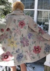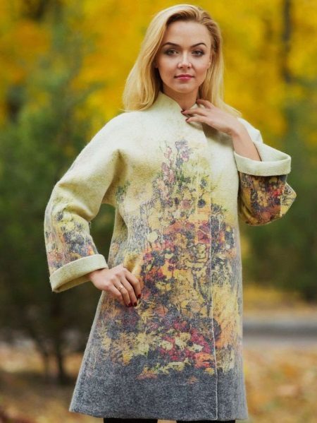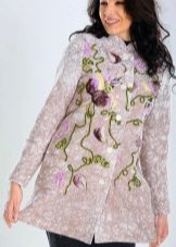 És molt popular la decoració decorativa feta a mà de models de llana de feltre, cosa que fa que la cosa sigui exclusiva, única i realment única. Per crear textures espectaculars sobre un abric de feltre, no només s’utilitzen fibres de llana d’un color contrastat, sinó també seda, lli, cotó, viscosa i fins i tot algues.