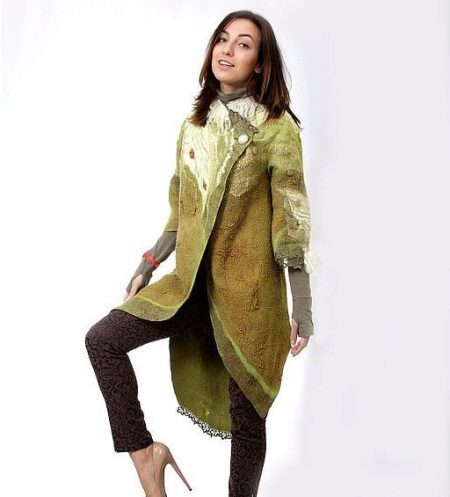 Els productes elaborats amb llana de feltre es caracteritzen per una estructura de relleu i plasticitat, cosa que proporciona als dissenyadors un ampli camp d’imaginació. La roba exterior de llana de feltre té un estil completament divers.