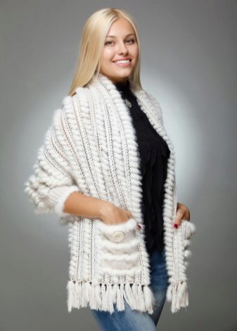 Els tradicionals abrics de pells de visites brillants de vegades semblen ser una relíquia del passat i, a continuació, una capa moderna de visó de punt es convertirà en una alternativa digna a coses ja avorrides. Aquest abric no només està de moda i elegant, sinó que també és força versàtil - s’ajustarà fàcilment a l’armari d’una dama de qualsevol edat i complexió. Tanmateix, recordeu que un abric de teó no està dissenyat per a gelades.