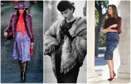 Amb vestits de nit, generalment es combina el manto de pell natural. L’estil informal implica materials menys cars com ara pelleteria, teixit o teixit de punt. Per a un abric, es poden triar teixits amb una pila: per a una versió de punt, de vegades es compra un fil especial anomenat "herba". Aquest fil té diferents pilars i pertany a diferents tipus de fil. Està fabricat amb poliamida o polièster, de vegades amb l'addició de materials que donen brillantor.