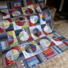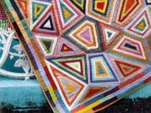 He de dir que els elements individuals del plaid es poden combinar entre si segons sigui necessari, o bé, configurant un determinat patró o seqüència de colors. Per fer-ho, abans d’iniciar el treball, es desenvolupa un diagrama o esbós. Les peces separades d’acord amb la instrucció visual s’ajunten primer en blocs, i després en una sola peça de teixit, que es cosirà junt amb un folre.