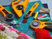 Tanmateix, és més correcte comprar un ganivet especial per a rodes que copi el material més dens, que no arruixi ni s’esmorteixi el teixit. El diàmetre d'una fulla rodona s'opta millor per igual a 45 mil·límetres. El treball amb una llanterna no es pot realitzar sense una catifa especial de goma amb marcatge. És millor triar models amb costats de 60 a 45 centímetres o 60 a 50 centímetres. Les agulles usades han de tenir un ull petit i tenir un bon afilat. El gruix dels fils es selecciona en funció de la densitat del material de la tela. Bé, si la seva ombra coincideix amb la que es troba més sovint a les trituradores. El didal protegirà els dits durant l’operació.