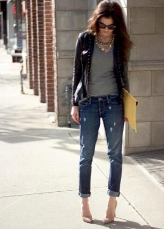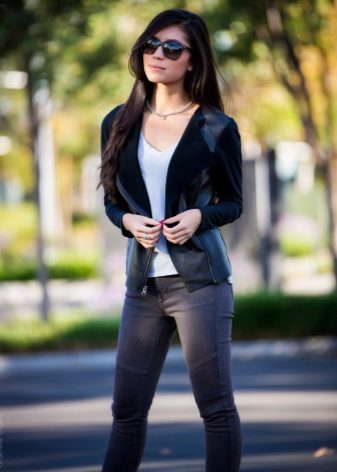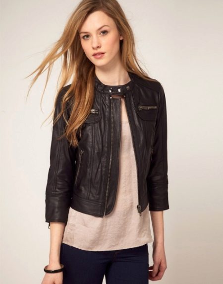 Sense exageració, es pot dir que una jaqueta de cuir escurçada amb un coll plegable o un collet de peu és considerada no menys popular, però més popular entre els joves.Aquestes jaquetes sovint es fixen amb cremallera i tenen un gran nombre d’elements addicionals: puntades contrastades, reblons, tirants, butxaques. Posant-hi una jaqueta, no us haureu de trencar amb accessoris addicionals, ja que la jaqueta ja està força decorada.