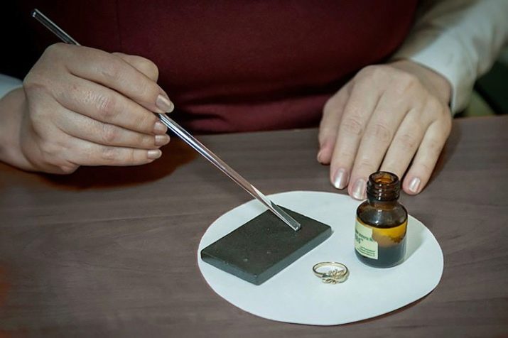 El mètode de determinació següent és molt senzill. Necessitat goteu a la decoració amb solució d’alcohol iode. En platí real, el iode no s'il·lumina i s'esborra sense taques. Mètode per determinar l'autenticitat del platí amb vodka reial també existeix. Recordem les lliçons de química de l'escola: el vodka imperial dissol tant la plata com l'or, però no el platí. La solució es fabrica en una proporció d’1: 3 a partir d’àcids nítrics i clorhídrics. També hi ha un mètode utilitzant amoníac líquid. Quan el metall entra en contacte amb aquest líquid, resten traces fosques a la superfície del metall, l’única excepció és el platí.