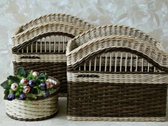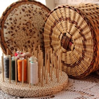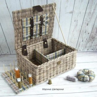 La qualitat i la bellesa de l’artesania depèn de l’experiència i les habilitats de l’artesana. Les cistelles de vímet grans són convenients per guardar boles de fil. Per a l’emmagatzematge d’accessoris de cosir, són adequats els cofres de vímet amb un element addicional al seu interior. Es tracta d’un buit pla amb escuradents sobre el qual s’enfilen bobines de fil.