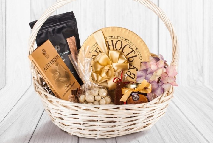 Aquestes cistelles solen estar farcides de fruites, dolços o cosmètics. Vostè pot fer aquesta sorpresa. A més de productes saborosos i saludables, podeu posar alguna cosa des de l’oficina a dins, per exemple, una bonica llibreta en tapa tova.
