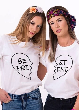 - Samarreta amb foto conjunta impresa. Si realment ets el millor dels amics, aleshores a la impressió següent, encarrega't dues samarretes idèntiques amb la teva divertida foto conjunta. Aquest regal sempre recordarà a la noia de la vostra amistat.