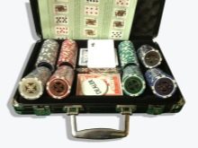 - Conjunt de Poker. El clàssic joc per a homes macos és el pòquer. Els kits per a això inclouen fitxes i targetes, tota la parafernàlia es troba en maletes boniques que semblen molt dignes.