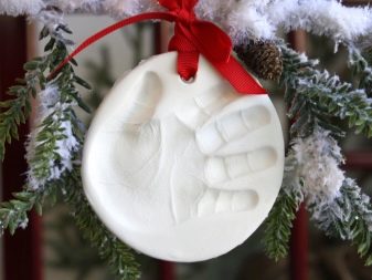 - Un repartiment de plomes i cames sobre joguines de Nadal. Per fer-ho, el peu o la palma del nadó estan recoberts de cola PVA, pressionats a la bola, després ruixats amb purpurina i deixats assecar-se completament.