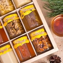 - Fragrant mel. Un gerro d’autèntic plaer de la mel és un meravellós record de Cap d’Any per als coneixedors. Els venedors ofereixen cistelles de regals que consisteixen en diversos envasos petits amb diferents tipus de mel.