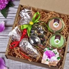 - Té Les botigues especialitzades ofereixen una gran varietat de tes diferents. És millor si coneixeu les preferències dels companys, aleshores podeu triar el vostre propi gust i aroma per a cadascun. També s'afegeix al set una parella de te o tetera.