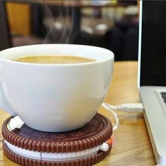 Per als empleats que estiguin molt temps al lloc de treball, un escalfador per a la tassa haurà de ser útil. Aquests dispositius tenen diferents configuracions, per exemple, en forma de cookies "Orio". Es connecten mitjançant un port USB d’ordinador. Si el te o el cafè s’ha refredat, el suport els ajudarà a escalfar fins a 40 graus.