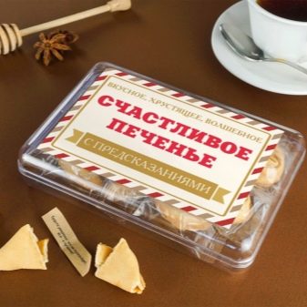 Barres de xocolata fredes, inscripcions còmiques, divertides formes de tasses i altres dispositius sorprendran i faran riure els companys. Definitivament, l’estat d’ànim s’incrementarà els dies de Cap d’Any i després d’aquests. L’única condició és la comprensió mútua, la correcció, el bon coneixement dels personatges i les preferències de les persones. Els companys no us haurien d’odiar després de rebre una presentació.