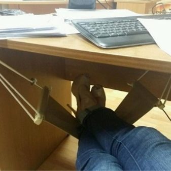 Una altra cosa original que val la pena preguntar és l’hamaca per a les cames. Està penjat sota una taula en lloc d’un suport. Segur que agradarà a les persones que treballen molt a l’ordinador.