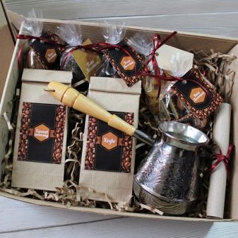 - Cafè Com a presentació, cal triar-la amb cura i amb bones varietats d’elit. Si aquest és un regal col·lectiu que tothom utilitzarà, és millor parar-se al cafè estàndard sense additius. Com a presentació individual, tria un producte en funció de les preferències dels companys. Podeu afegir cafè o cafè a un parell de cafè. Cal destacar que la beguda és soluble, mòlta o de cereals. Considereu-ho quan compreu.