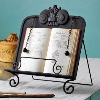 - Stand de llibre de disseny original. Als departaments de productes d’interior hi ha exemplars que difereixen per aspecte i funcionalitat interessants. Si l’opció d’un accessori de llibres sembla una mica de moda o hi ha dubtes sobre que els productes impresos no s’utilitzen sovint, hauríeu d’optar per estands per a tauletes o ordinadors portàtils.