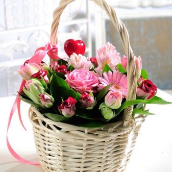- Roses en una cistella. Qualsevol dona que ocupi una posició de lideratge apreciarà aquesta composició. La cistella de flors composta per roses, orquídies, iris de colors pastel sembla original.
